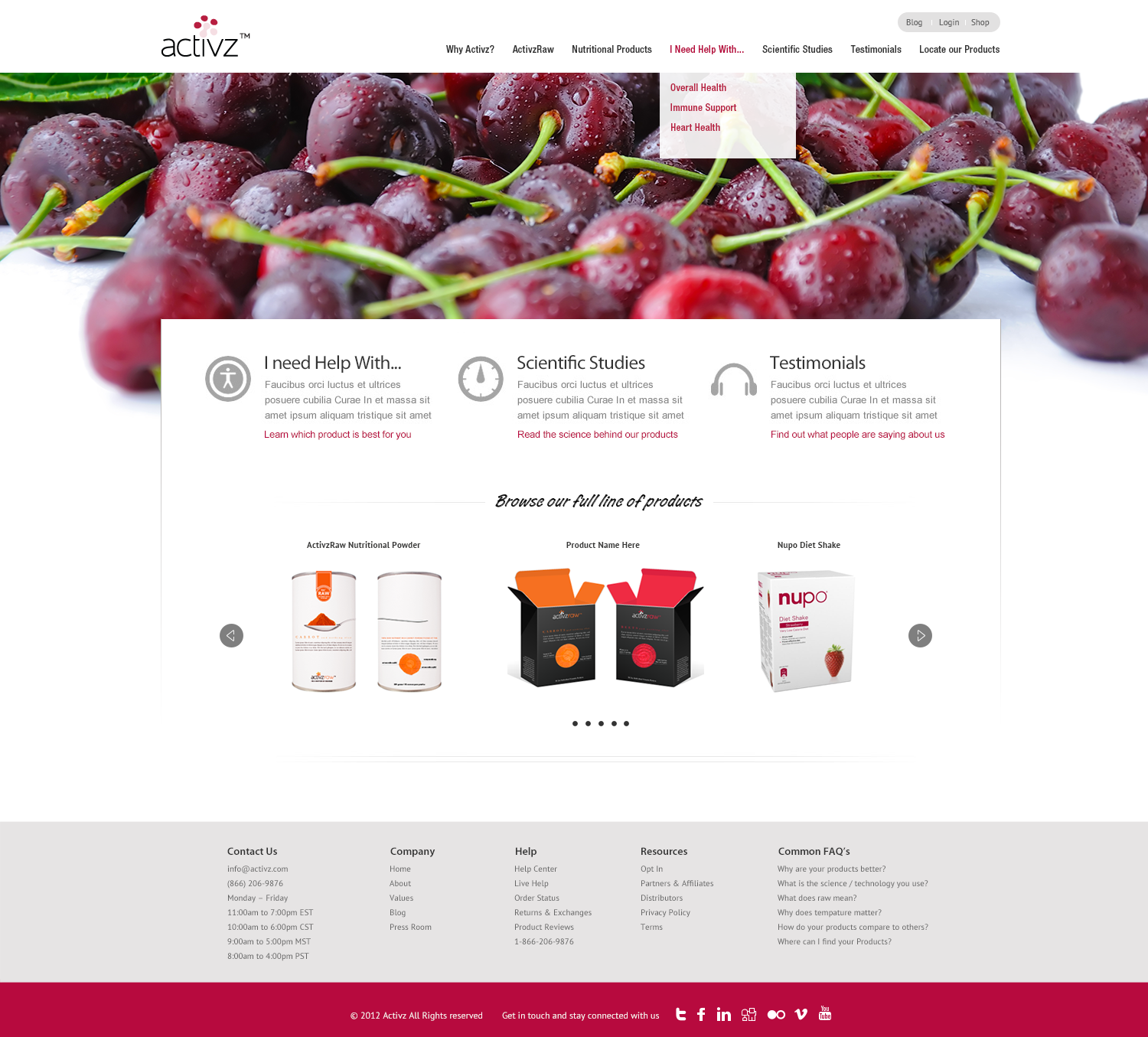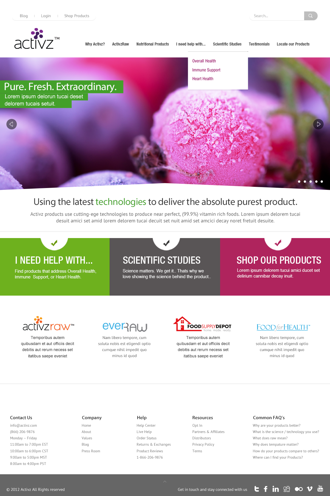 Working with the Activz Product and Marketing team, I prototyped a few directions we could take the new website design. Showcasing fresh and natural fruits as the driving visual reinforced the products core ingredients and differentiated it from other products using lesser quality synthetic ingredients.